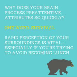 Sensory memory lifts the burden with “preattentive” attributes of form, color, position, and motion. In other words, we can detect movement or spot differences before our working memory consciously processes it.
