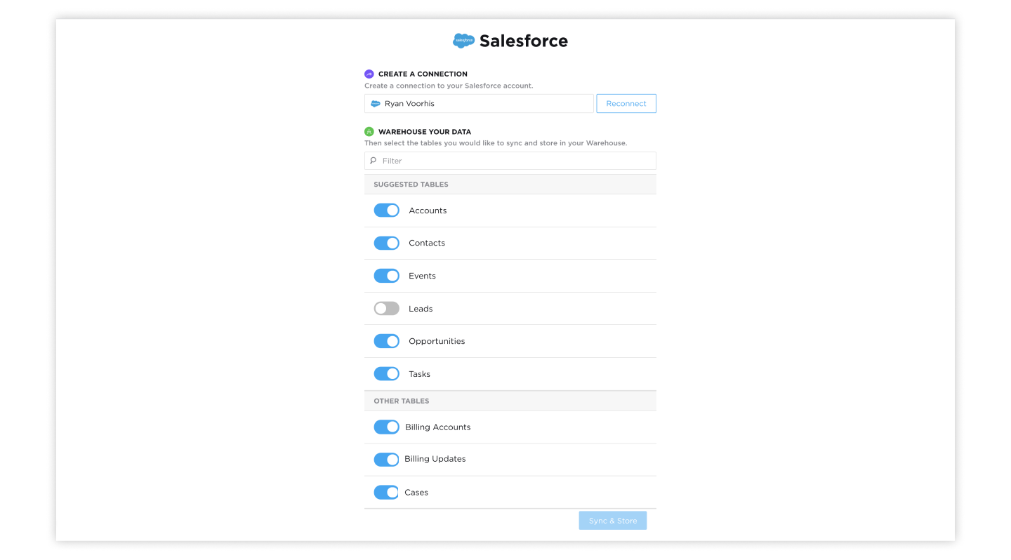 Connect to 9+ data sources. Pick which tables you want to connect to, and the warehouse immediately begins pulling and storing all your data securely. Build datasets of the warehouse tables so anyone at your company can get the data they need to make great decisions.