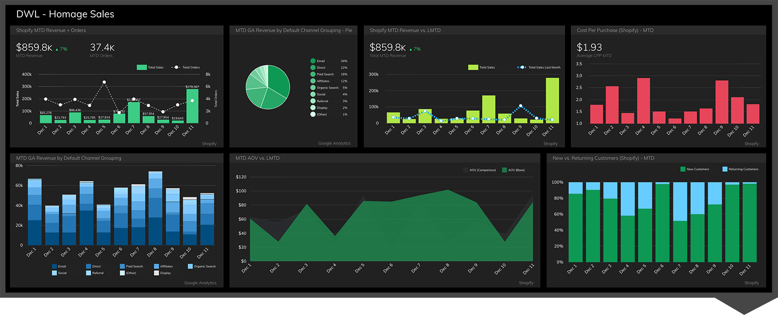 As an ecommerce and brick-and-mortar retail company, Homage relies on their sales KPIs to monitor product trends. Their management team uses this data to predict future sales, plan marketing promotions, and optimize discount campaigns so that they can maximize their profits.