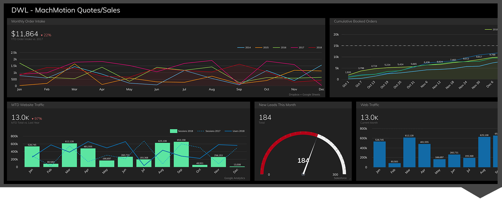 MachMotion uses their sales projection dashboard to reduce lost opportunities. The sales team can see when the finance team sends out a quote, allowing them to follow up quickly with prospects instead of letting the deal fall into limbo.