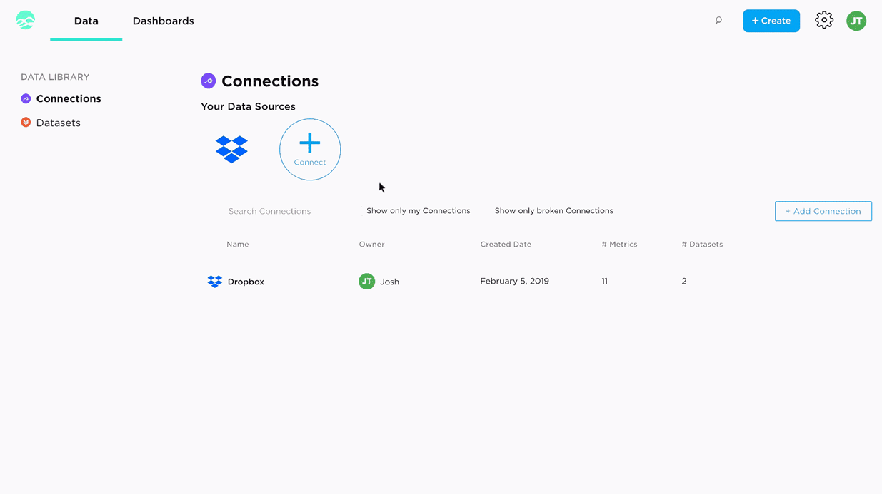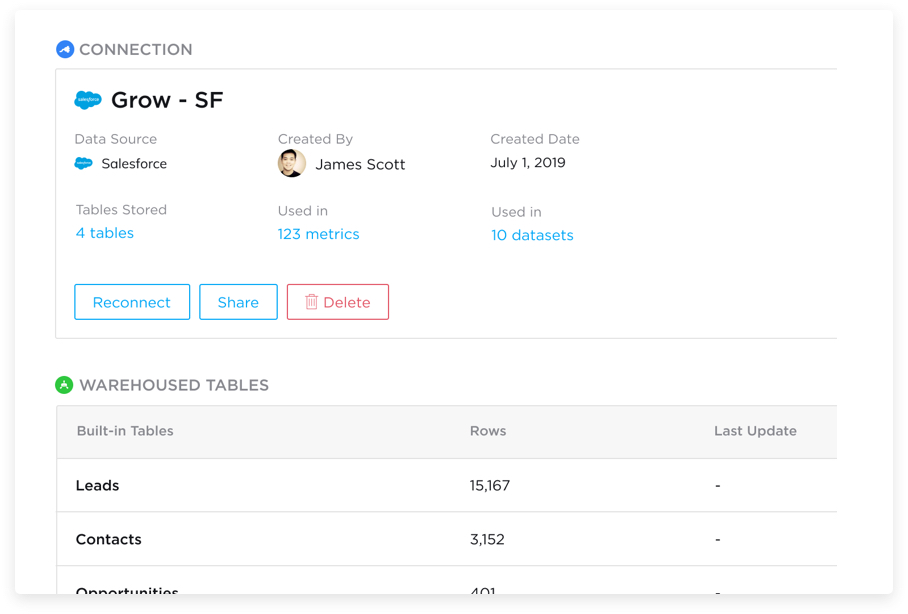 Establish a connection and store your data in Grow to deliver transformative insights you can’t achieve otherwise. Create datasets that incorporate custom business logic into a single source of truth that everyone can use.