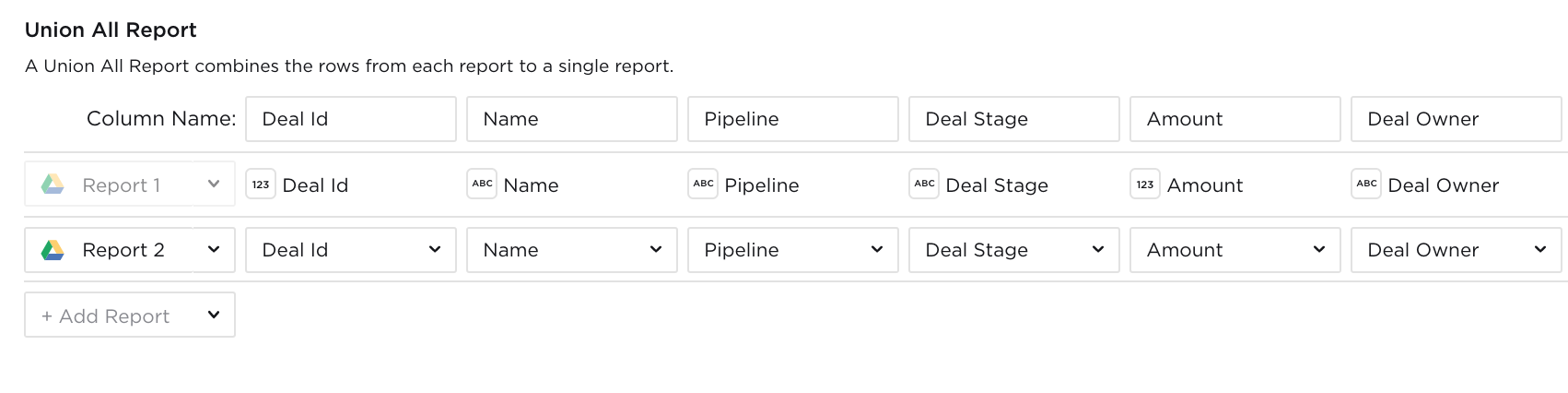 Select the reports you want to Union. If the data types and column orders match up, one click is all you need.