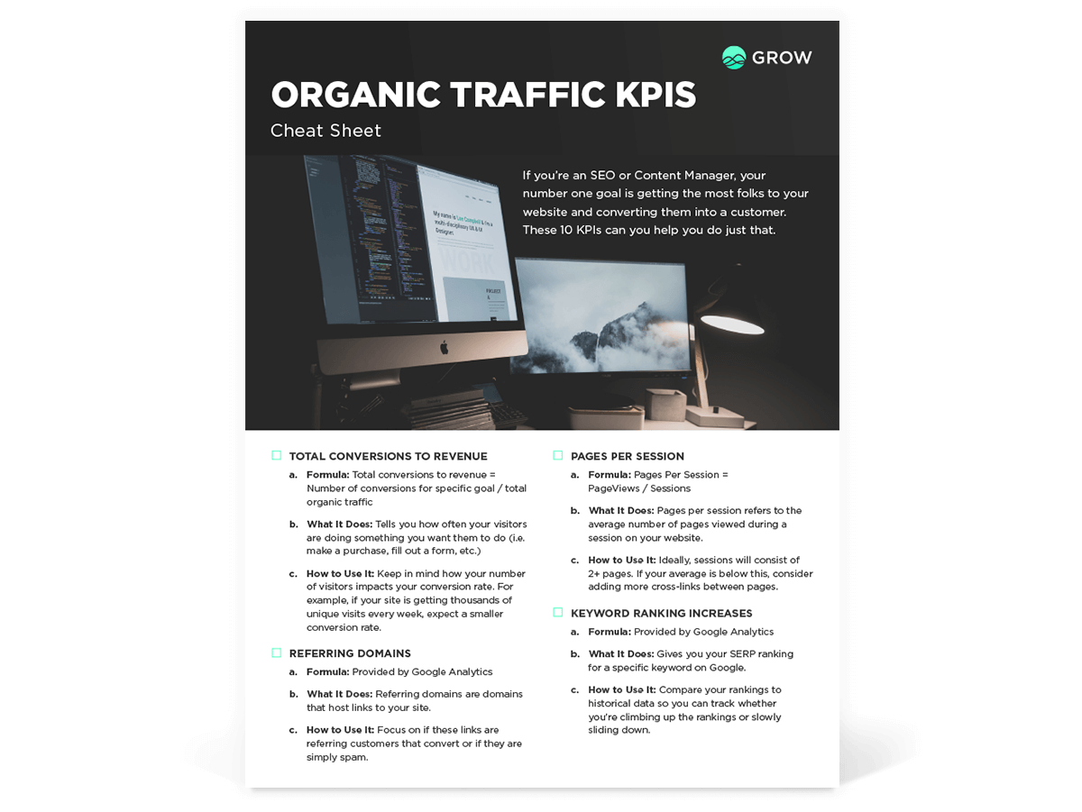 Your download resource: Organic Traffic KPIs Cheat Sheet, will be available shortly.